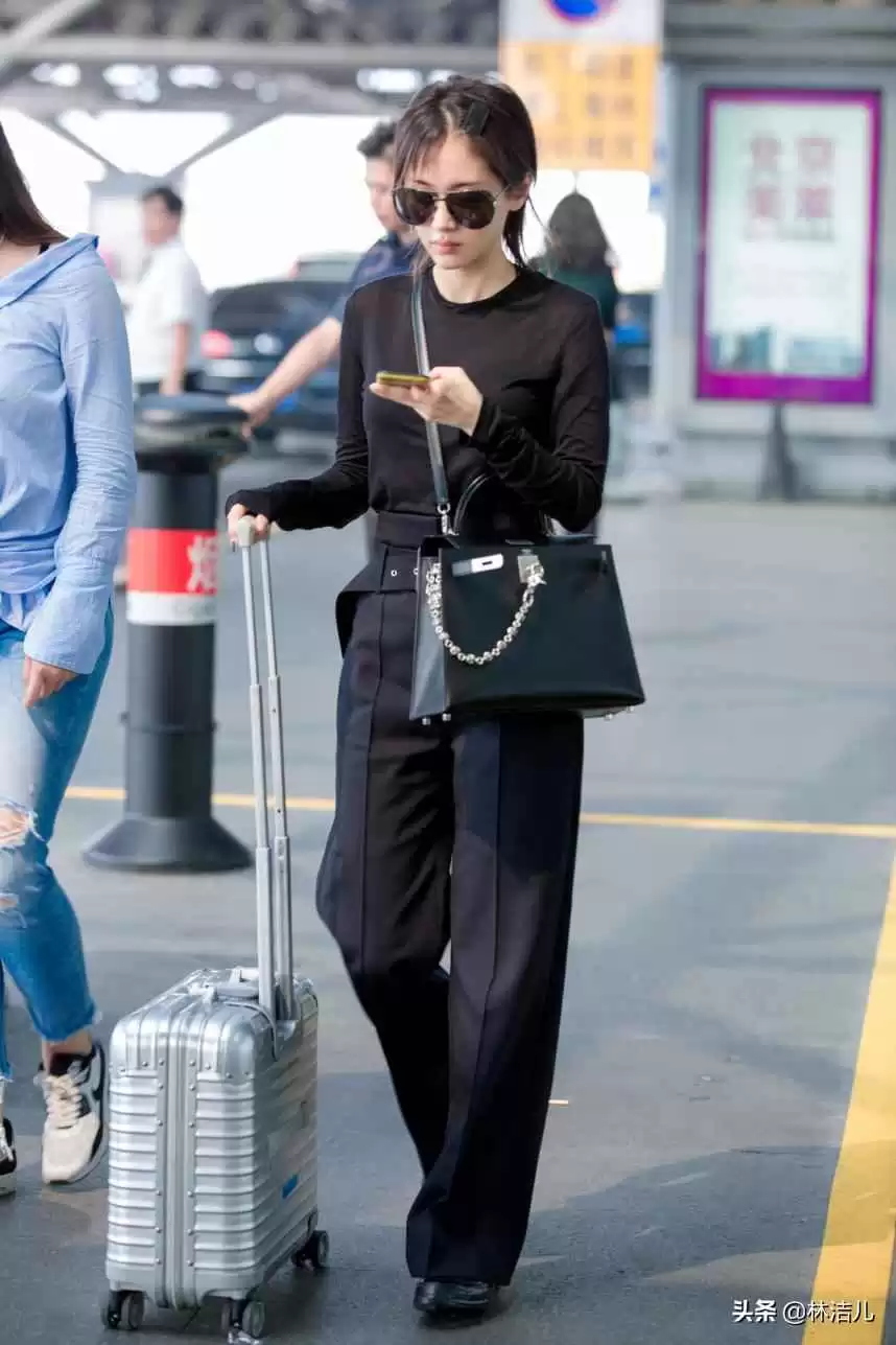 王子文小身材大能量,机场穿搭总是帅气逼人,单品都是流行款,酷中带媚。