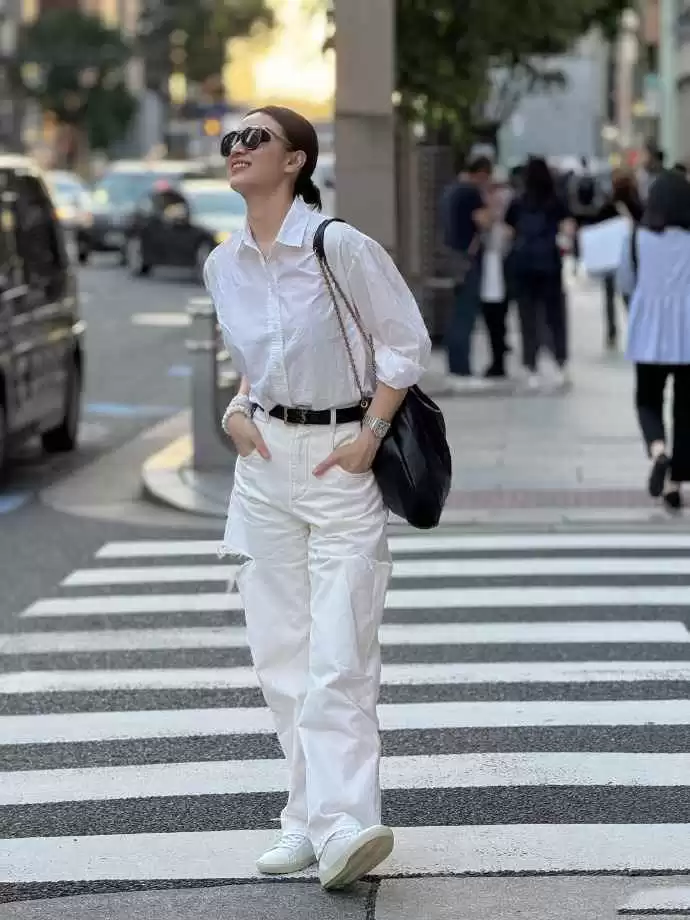 白衬衫搭黑色阔腿裤,简单到极致,但这种组合不挑年龄和场合,永远经典不过时。