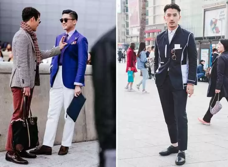 瘦削身材避免过于宽松,修身西裤配皮鞋,上身穿有版型的外套,如风衣增加体积感。