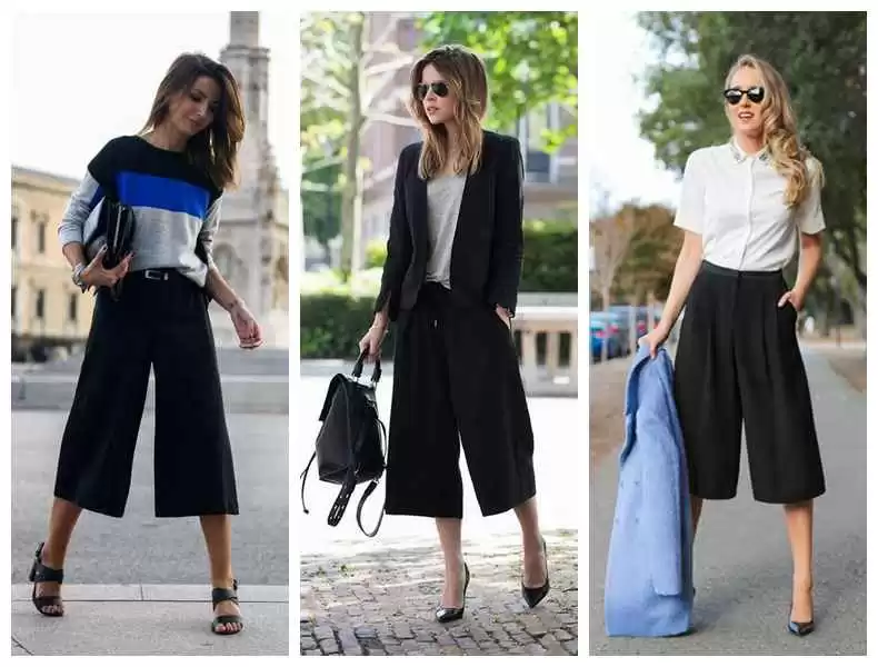 阔腿裤不是禁区!选高腰九分或七分款式,搭配高跟鞋,裤腿别太宽,上下同色更显修长。