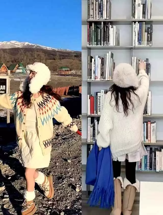 浅色雪地靴是她的隐藏心机。她算准冬天街道背景灰暗,奶油白靴子一跳出来,镜头自动对焦。深色靴子融进背景,人就被衣服吞没。白靴不耐脏,她拍三天就扔一双,成本算进广告费,普通人穿一次地铁就报废。