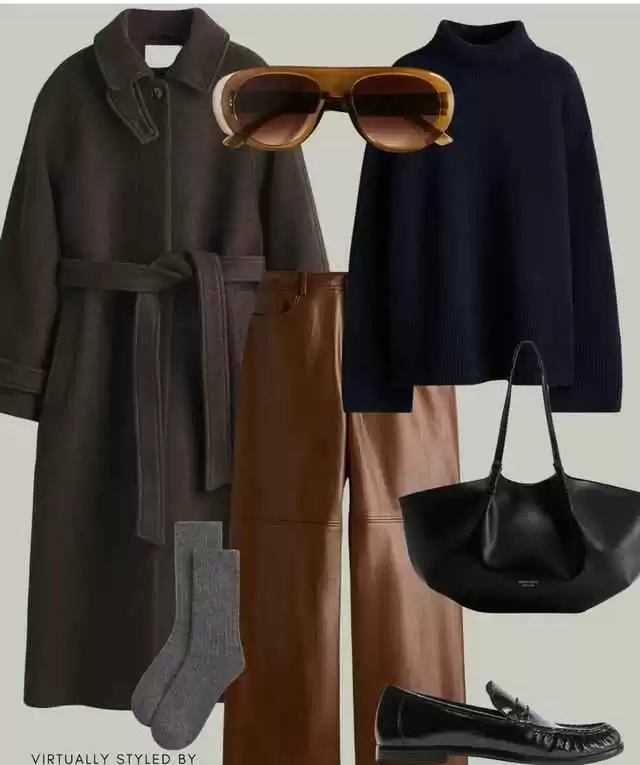 可拆卸羊毛大衣搭配衬衫或高领内搭,再配西裤和厚底鞋,日常出门有型有款。
