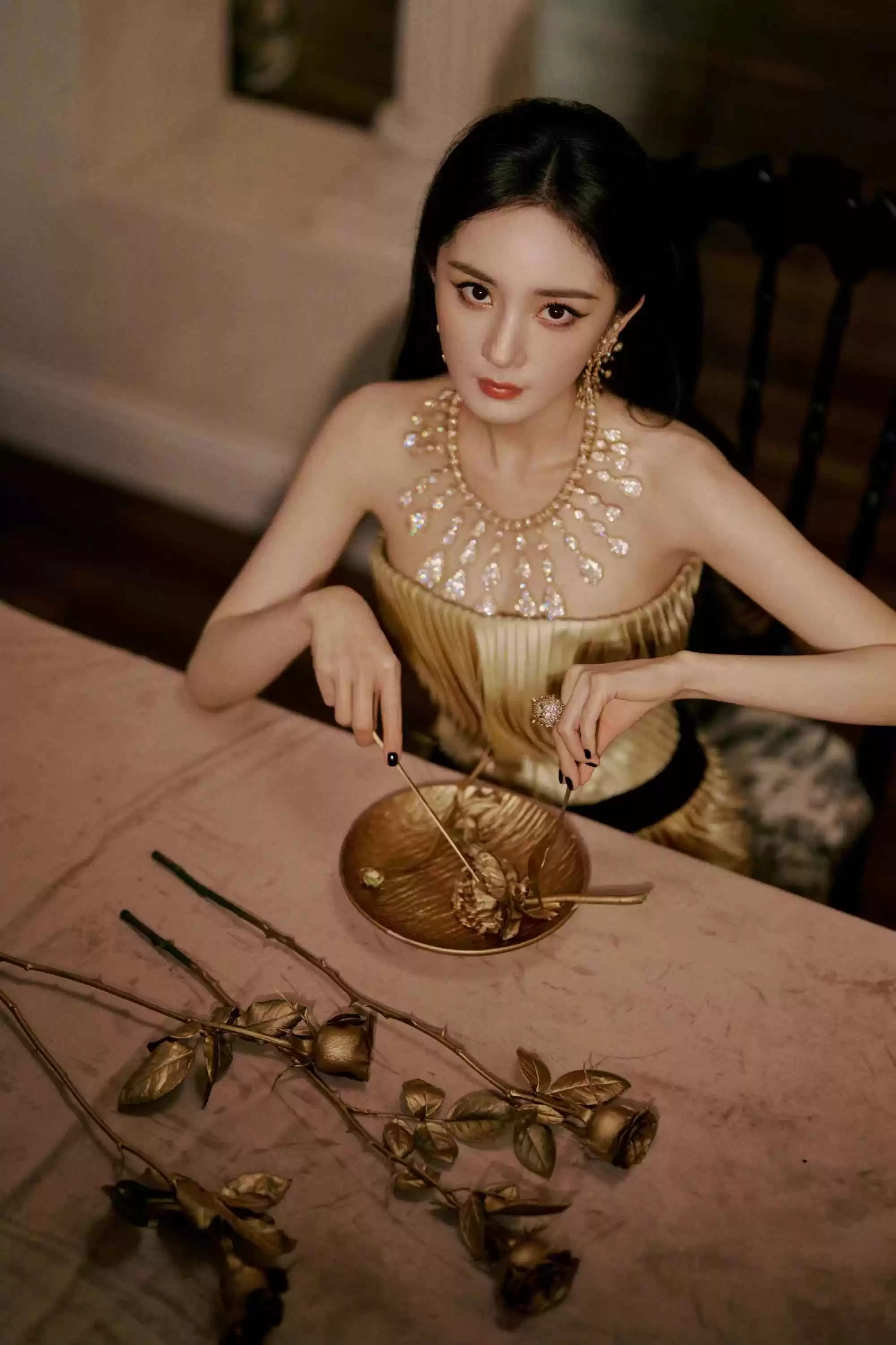 杨幂一袭蜂蜜色长裙演绎流光优雅风,再次证明她作为“85花时尚天花板”的实力!立体的褶皱随着呼吸微微起伏,营造出空间感。
