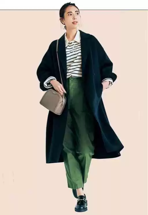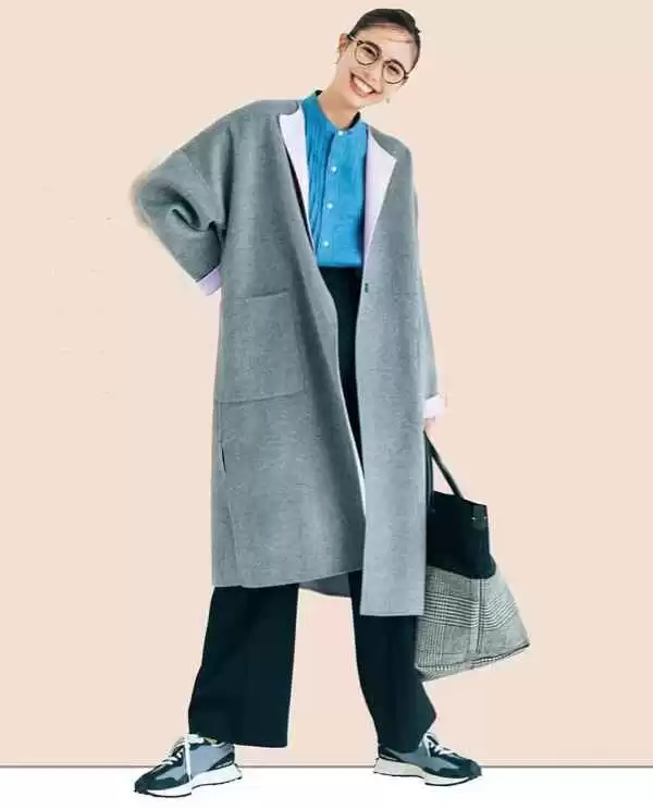 上宽下窄的休闲风公式,秋冬很多人爱穿。兼顾保暖、风格和美观度。