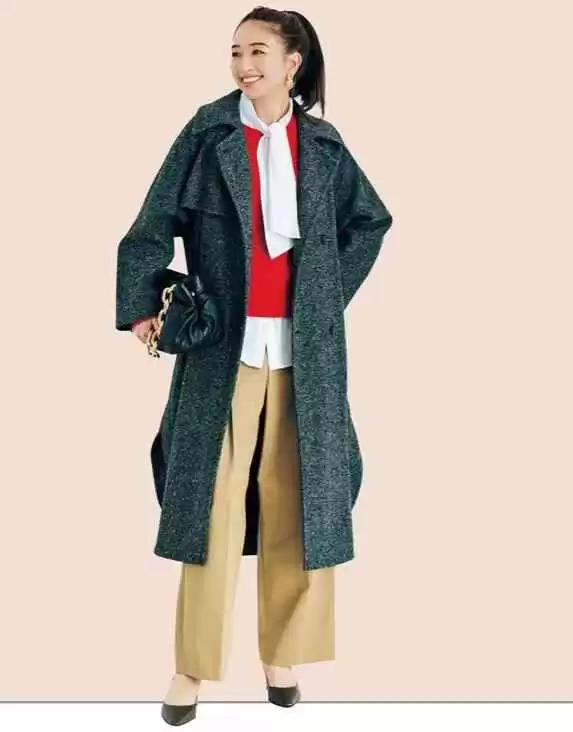 时尚点在哪里?绿色毛衣叠穿,首饰点缀,打造出与众个性的张力,这正是30岁女性对风衣的独特诠释。