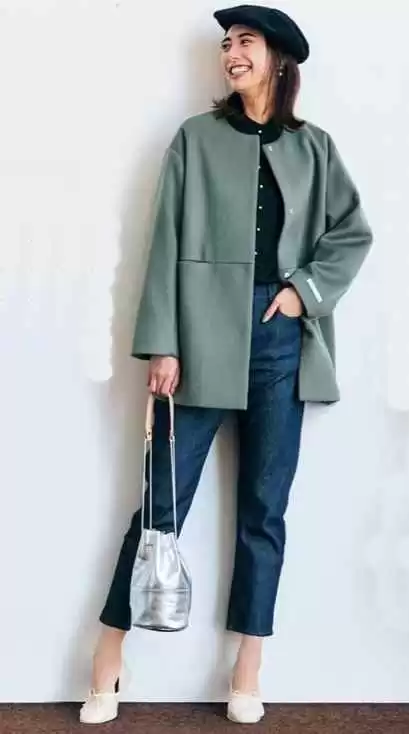 牛仔裤休闲风容易显得普通。怎么破?捷径之一是玩转配色。选择与丹宁色呼应的外套,瞬间提升看点。