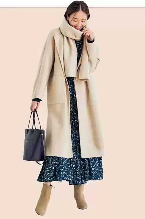 一袭飘逸长裙配优雅长大衣,是经典的淑女搭配。碎花点缀,羊毛质感,印花与素面碰撞,一眼心动。