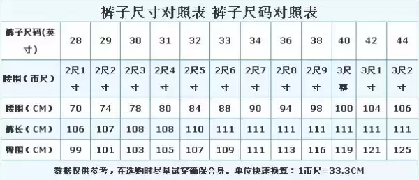 网友“东北大汉”问: 34码牛仔裤腰围是多少?俺想买条裤子,但网上尺寸表看得眼花。