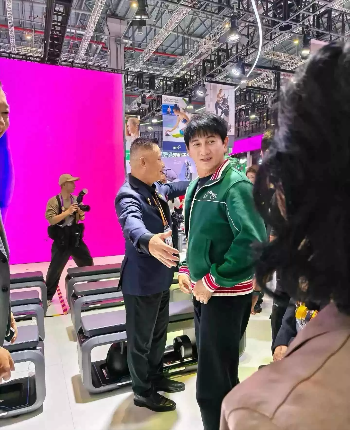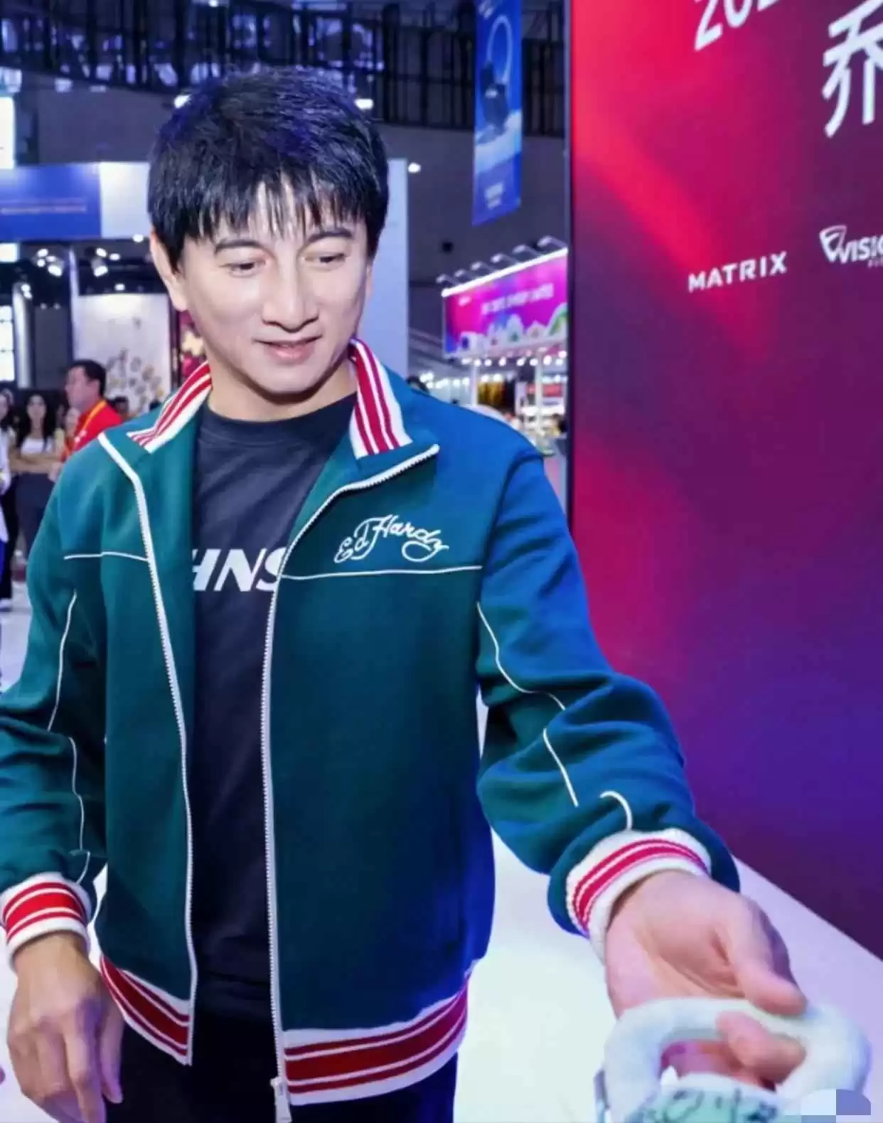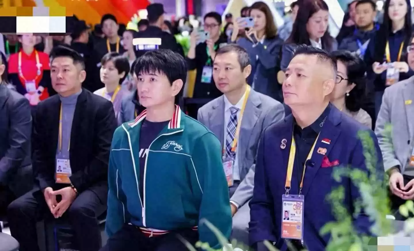 55岁吴奇隆亮相进博会,绿色夹克运动装造型,轻松穿出青春活力