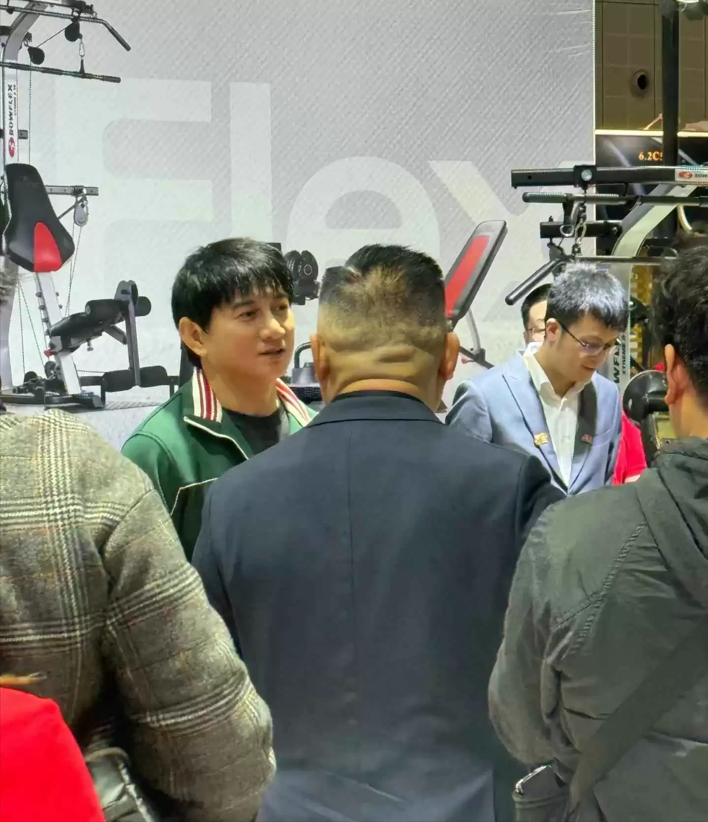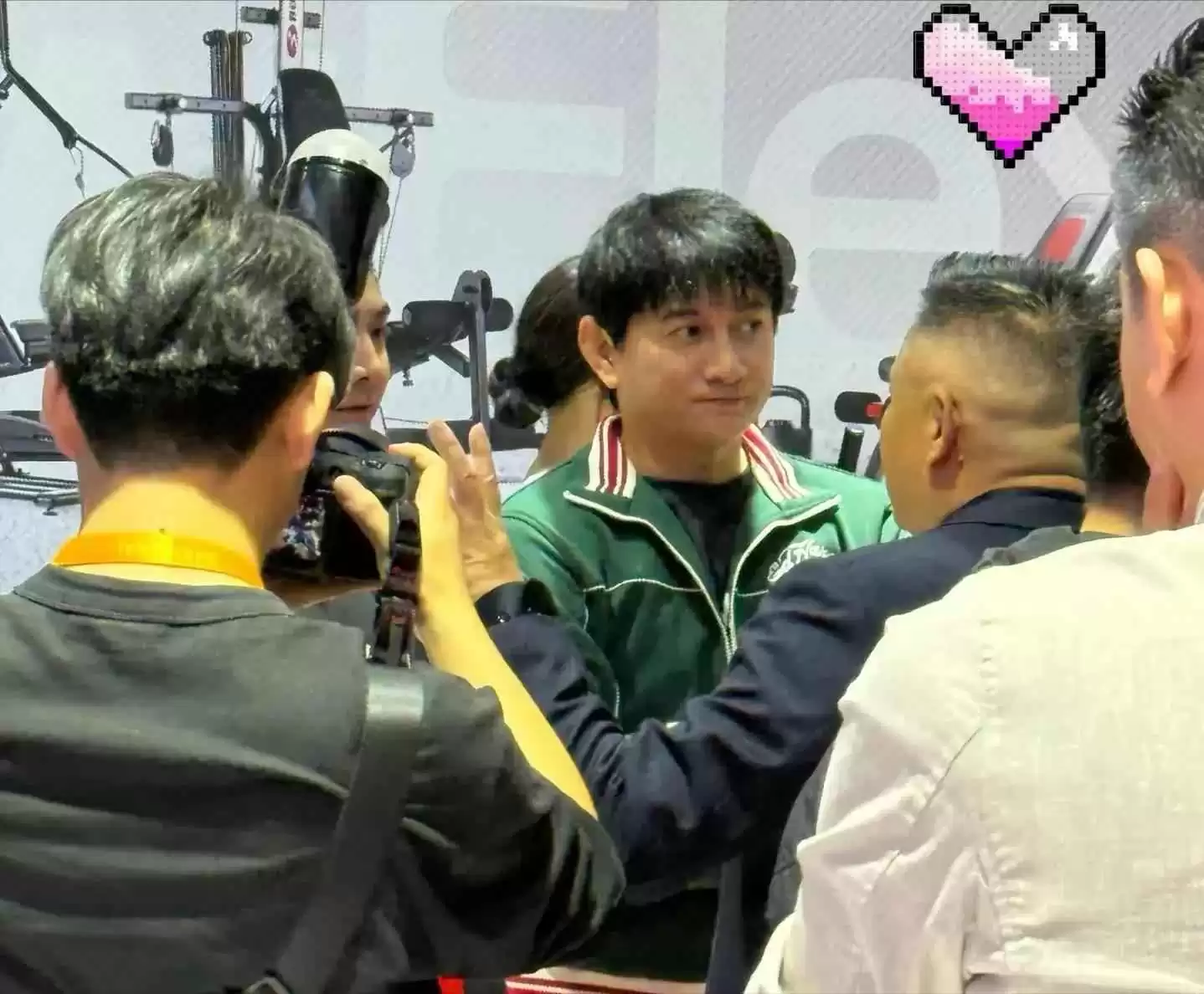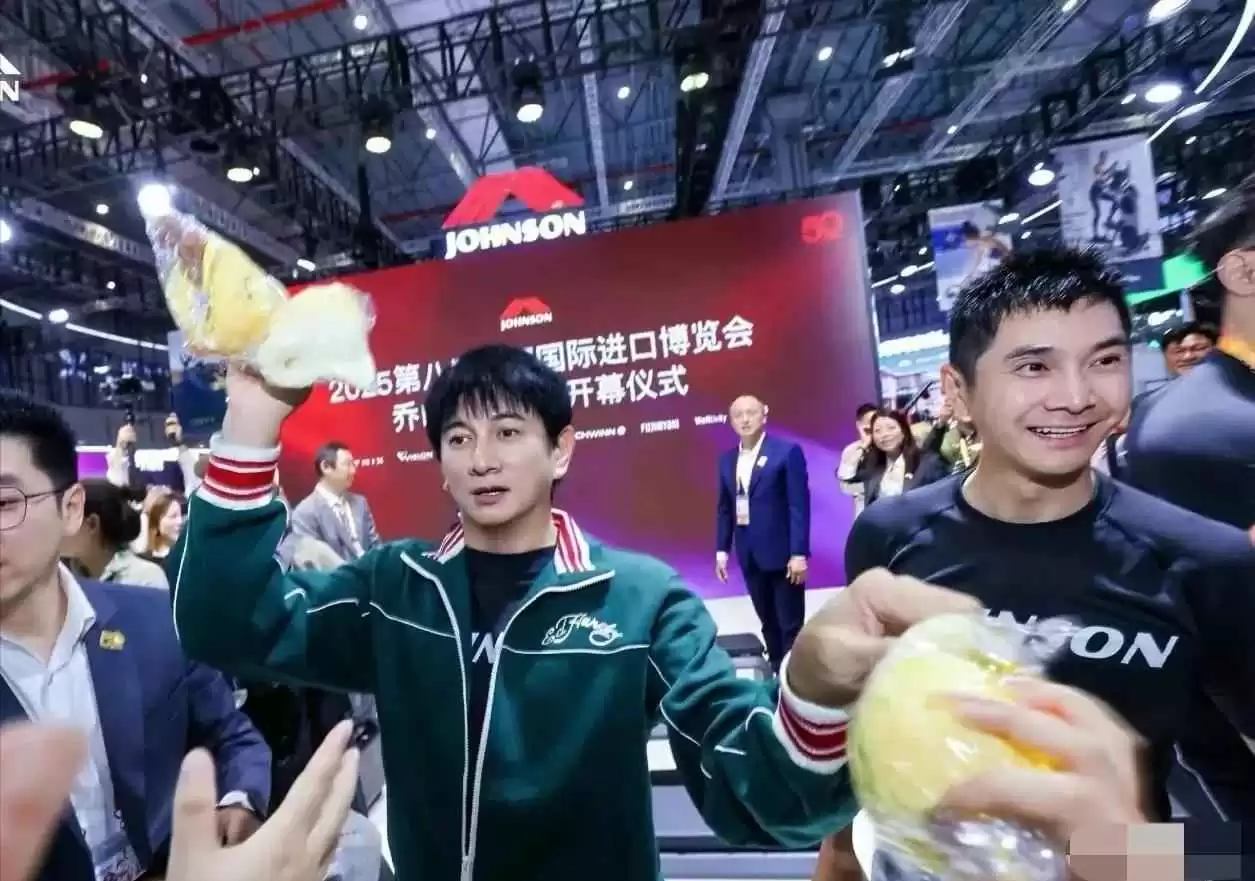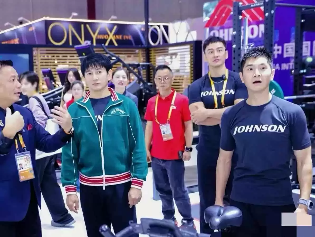55岁吴奇隆亮相进博会,绿色夹克运动装造型,轻松穿出青春活力