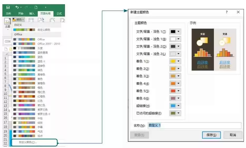 Excel提供了23套主题色方案,每套包含12种协调颜色。你只需点击【页面布局】选项卡下的【主题】-【颜色】,就能看到所有选项,默认是“Office”主题。如果想自定义,选择【新建主题颜色】即可调整: