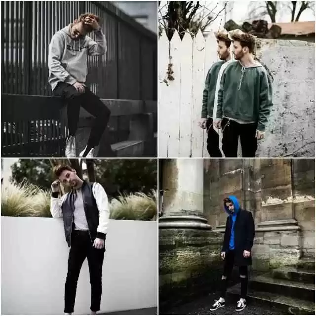 但宽松也得有个度。上身可以学Drew穿帽衫或宽松卫衣,长度别太长,也别太肥大。去年流行的廓形设计也不错,能增加肩膀厚度,营造出倒三角效果。