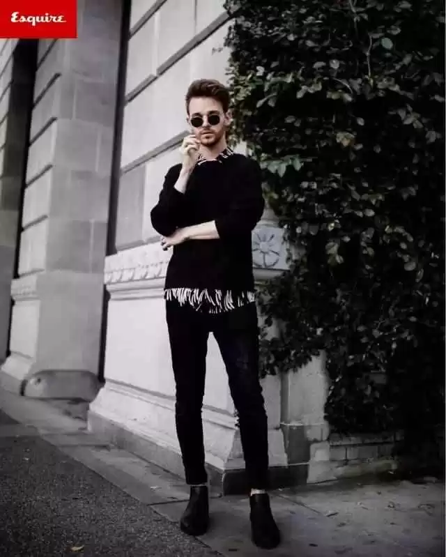 矮个子男生可以学Drew,露脚踝的同时还要露腰线。腰线是黄金比例的关键,盖住就矮5cm,露出就高5cm。