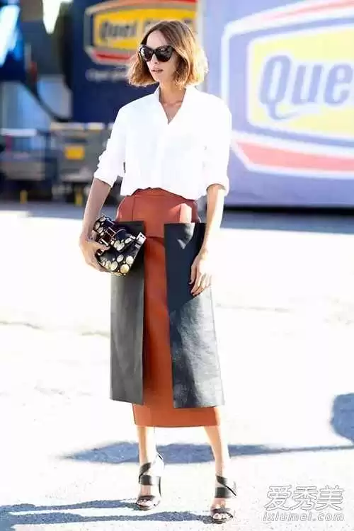 答: 小个子姐妹穿中长裙,关键是要打造好比例!请务必选择高腰款,并将上衣(建议选修身针织衫或T恤)完全塞进裙腰。搭配一双与裙子颜色相近的尖头踝靴或浅口单鞋,能最大限度延伸腿部线条。外套选择短款的皮衣或牛仔夹克,长度在胯部以上最佳。背一个腋下包或小斜挎包,也能视觉上提高重心哦!