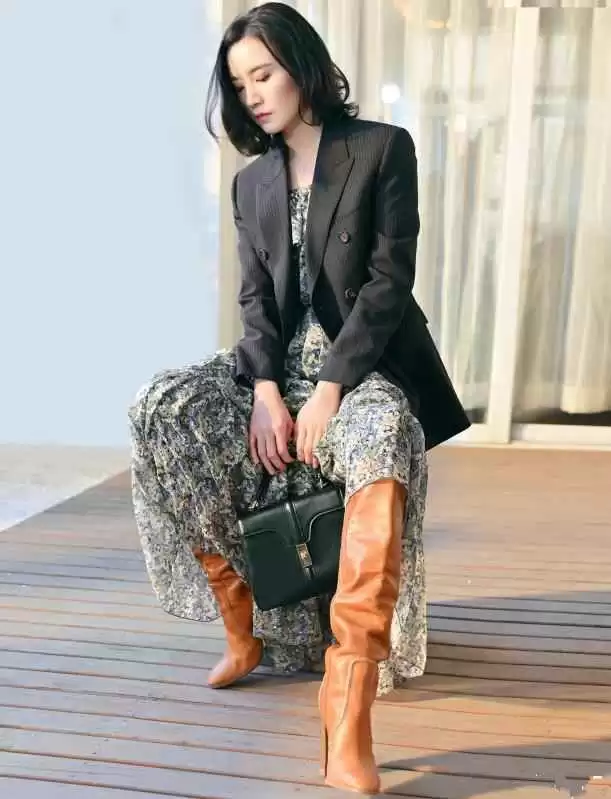 当然,前面提到的中长靴可能没有过膝靴那么显腿长,小个子女生最好选过膝款,搭配西装和短内搭,你也能穿出超模气场。