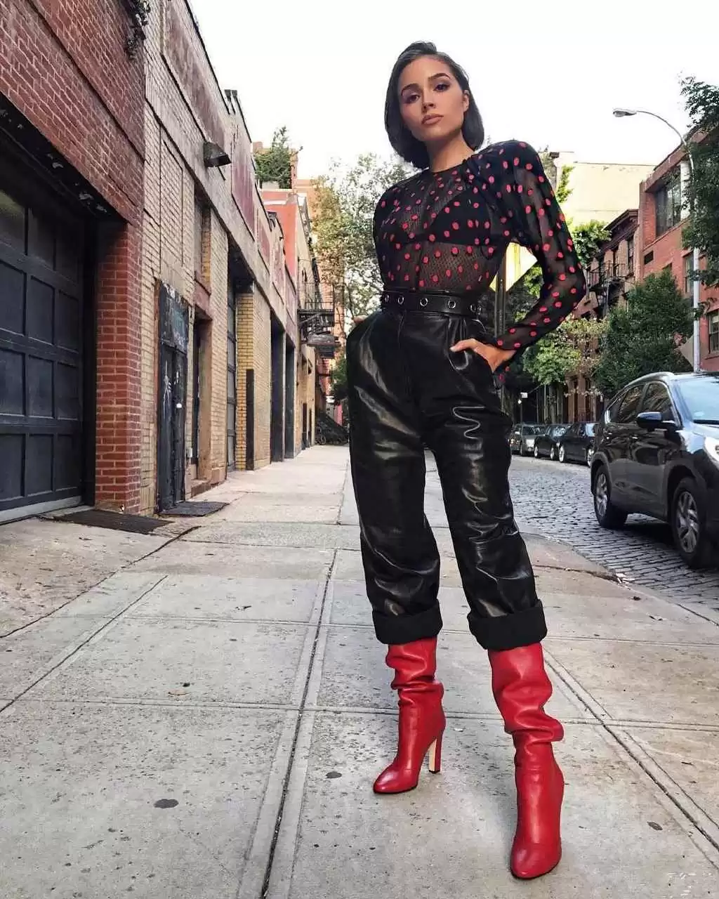 你可以选一条开叉半裙来配长靴,这样既能若隐若现地露出靴子,又增添了几分时尚感。