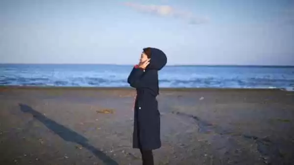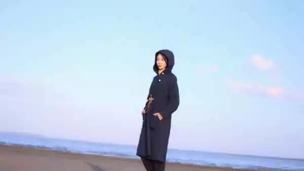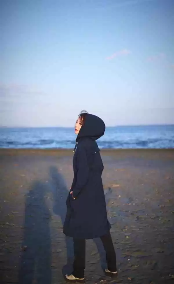 藏蓝色连帽外套既保暖又时尚,适合户外拍摄