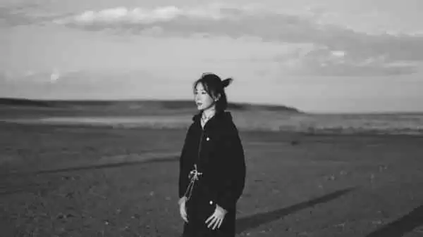 达里诺尔湖的背景下,陈数的穿搭与自然环境完美融合