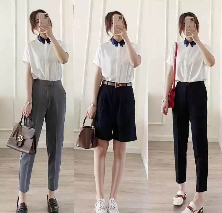 穿白衬衫短袖时,避免太死板,加个手提包或皮带点缀,瞬间提升精致度。配饰选得好,整体造型更出彩。