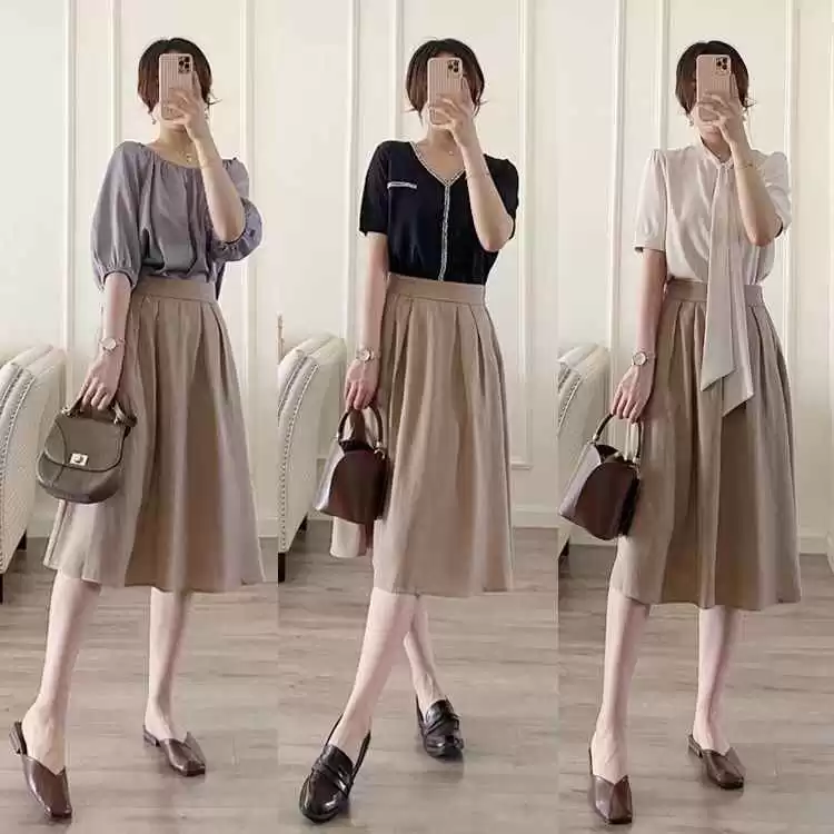 半身裙夏天超实用,上身配泡泡袖短上衣、V领T恤或衬衫,都能穿出优雅时尚感,耐看又显气质。