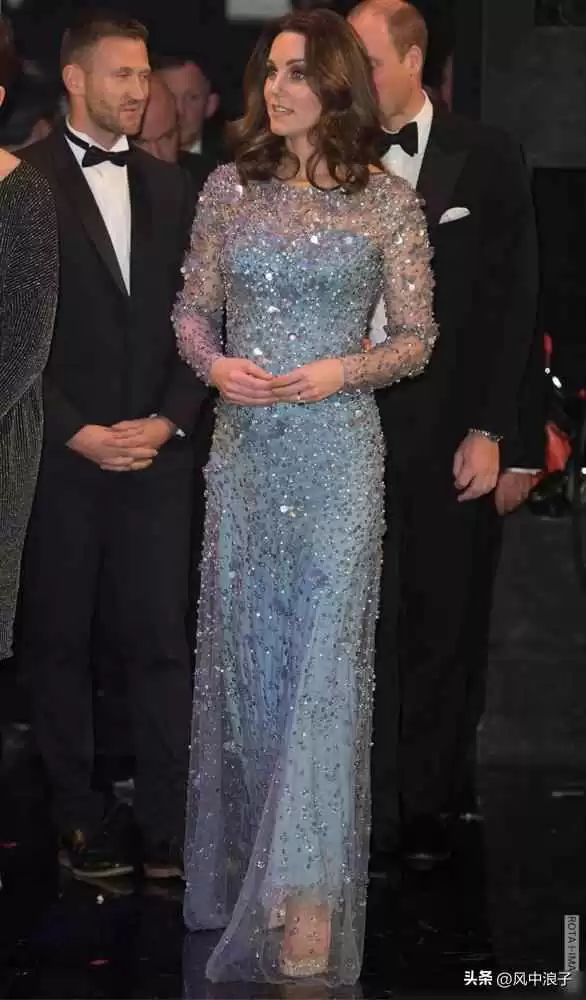 2017年,她换上了詹妮·帕克汉的水晶薄纱裙。薄纱外层镶满水晶,走动时仿佛踩着星光,终于有了“王妃该有的梦幻感”。但最让我印象深刻的是那天的配饰:祖传钻石耳环加上银色亮片高跟鞋,没有刻意抢风头,却把“低调的奢华”刻进了红毯记忆。