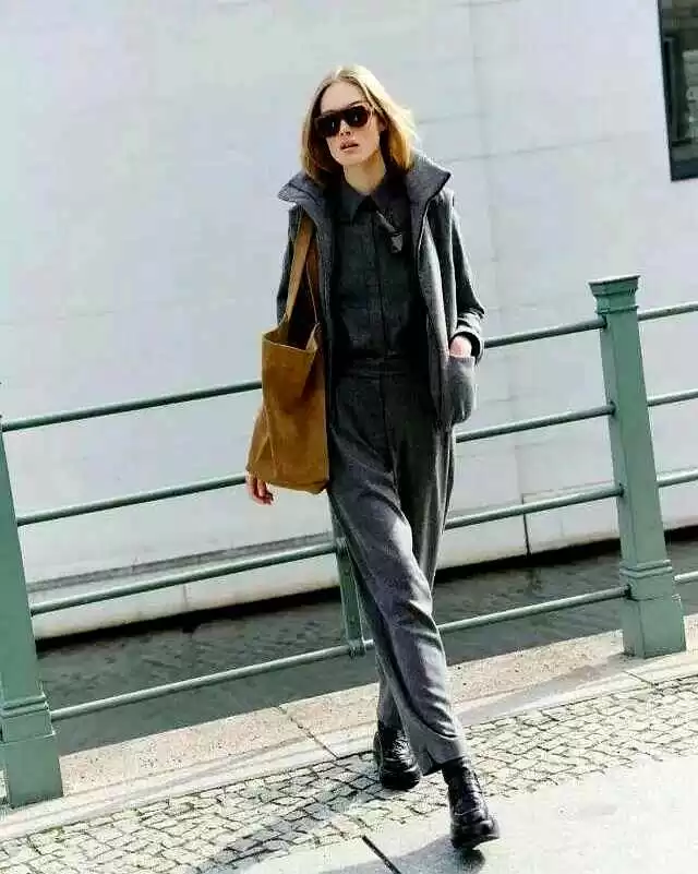 深色系或饱和度相近的色彩组合超显优雅,比如外套和内搭深浅不一,或者直接穿同色套装,都能轻松打造低调高级感。