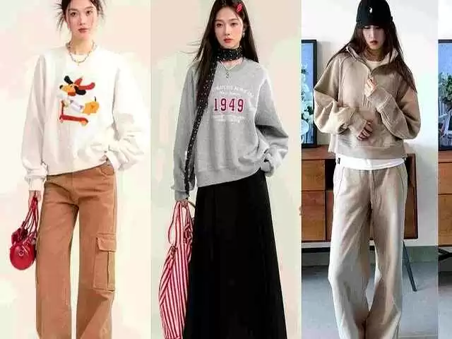 改进:卫衣搭直筒半裙或针织裙;或把卫衣当外套配连衣裙。