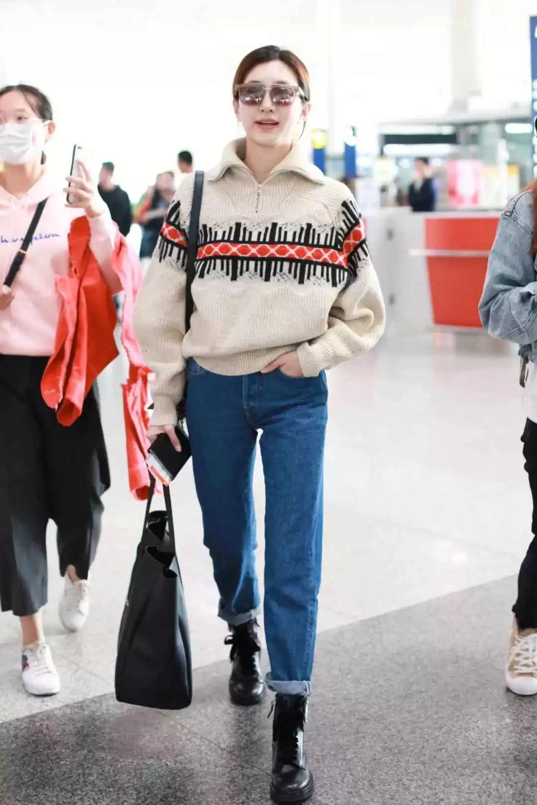 毛衣软糯慵懒,如果下身也宽松会显拖沓,江疏影常穿修身收脚裤提升气质,再塞衣角突出腰线。