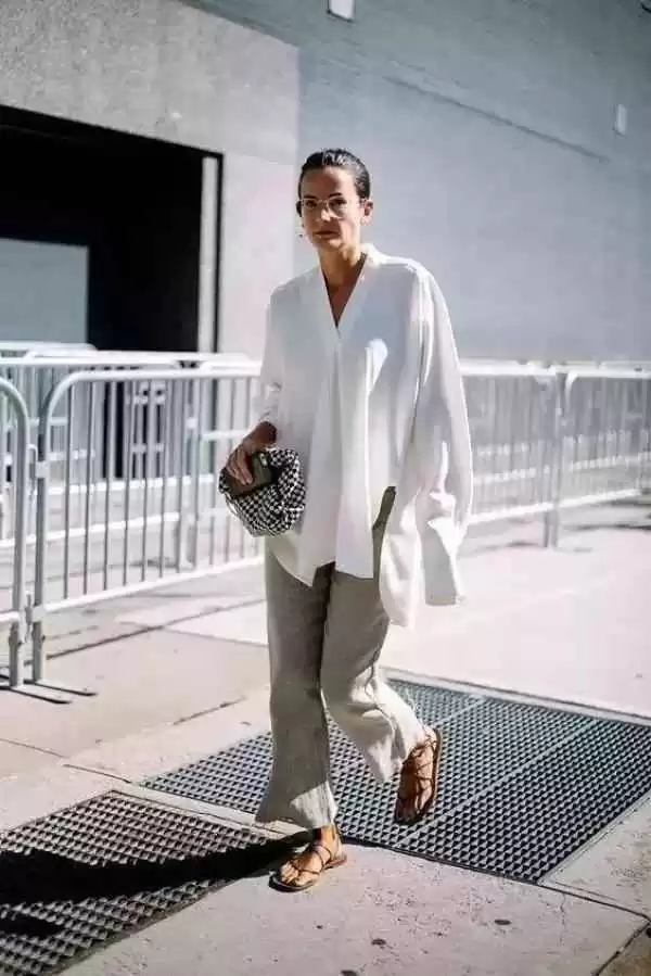 很多欧美设计师喜欢重新设计基础款,比如给衬衫加上流畅曲线和宽松剪裁,就能在视觉上营造出高级又时尚的感觉。