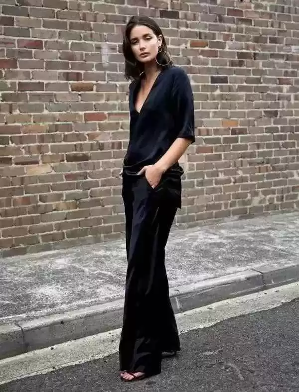 浅色系能穿出高级感,深色系也一样,比如图中小姐姐的全黑穿搭,简约设计配上黑色,完美展现都市成熟女性的风格。