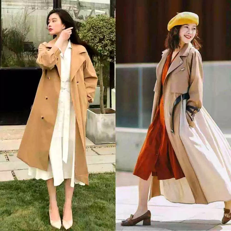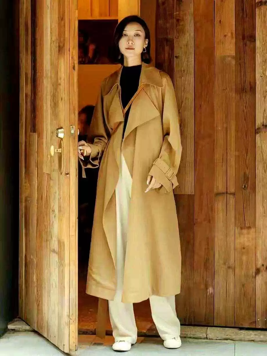 风衣太长、没收腰、材质硬,这些都是显胖的“坑”,尽量避开。