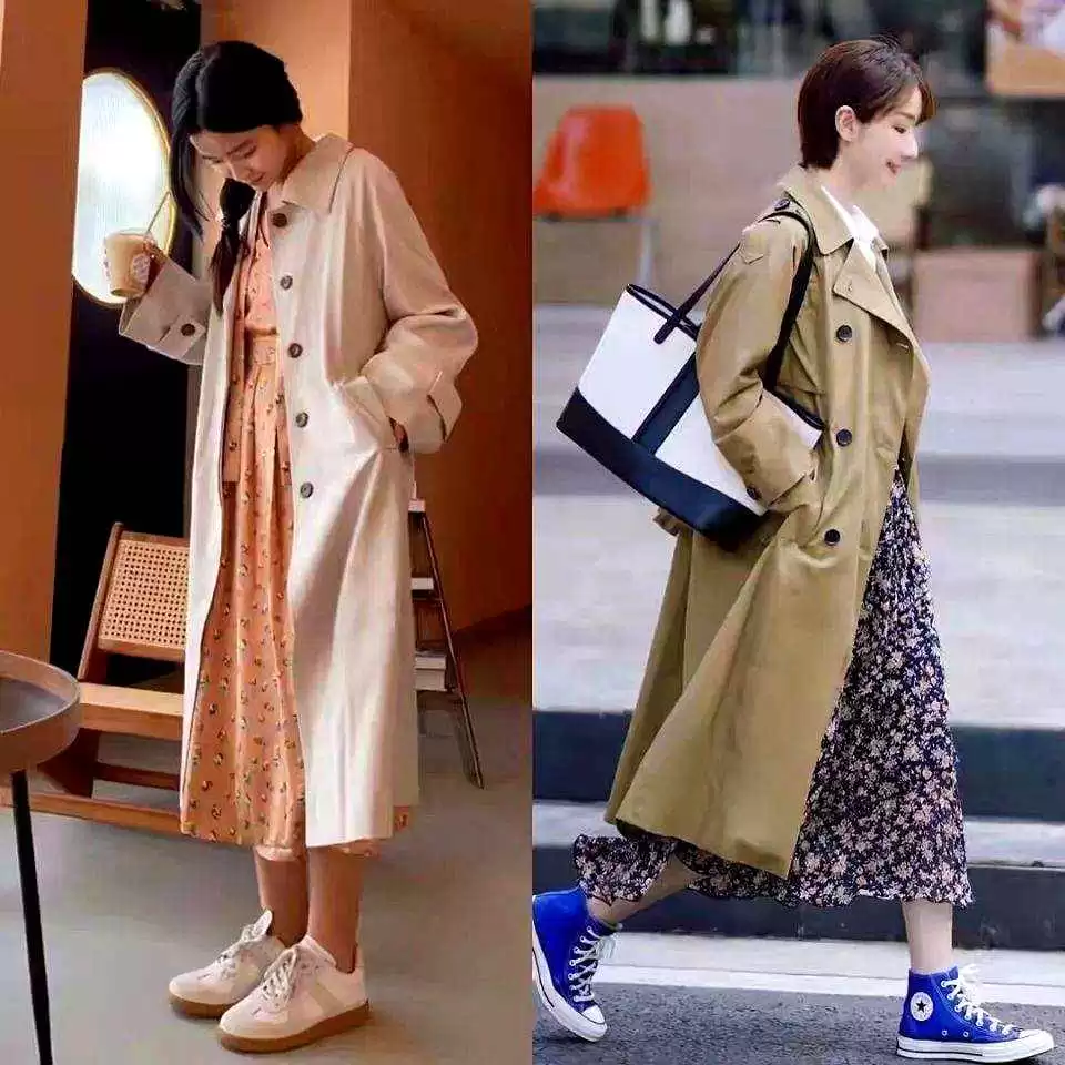 也可以玩点花样,波点或小碎花半裙配风衣,搭帆布鞋,街头风和法式感并存。