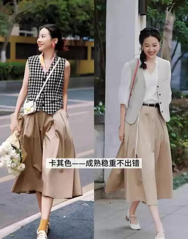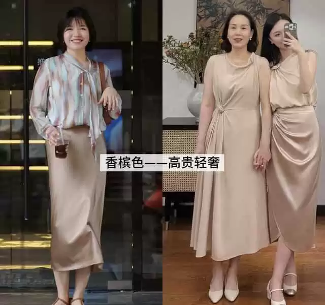 像香槟色、暖白色和卡其色这些基础色,依然很受欢迎,因为它们优雅又百搭,穿起来显高级,让人心里踏实。