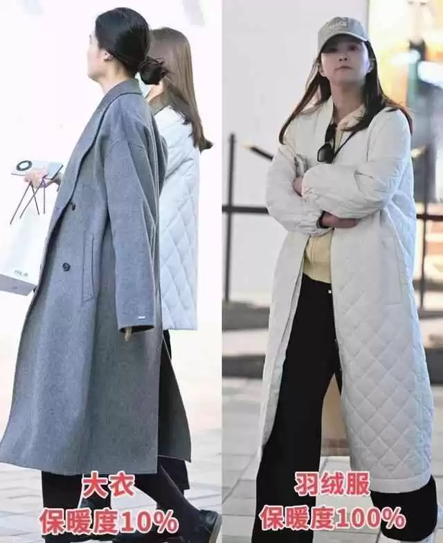- 选中长款羽绒服(盖住臀部到膝盖上方),身材比例更协调。