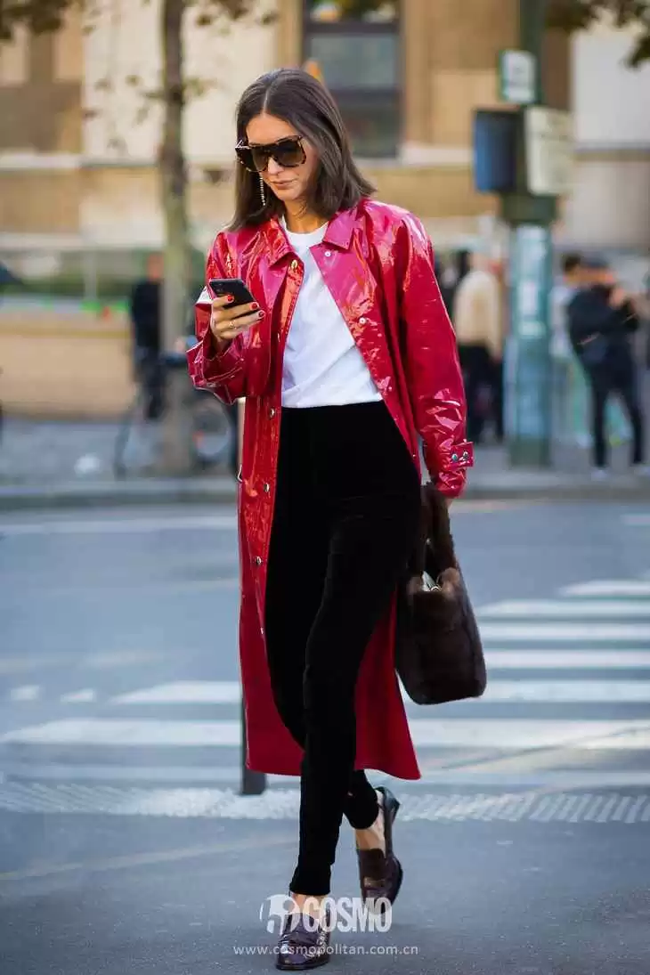 红色上衣配黑裤子也是经典组合,这种配色一年四季都适用。红色单品和黑裤子搭配起来非常实用,不容易过时。