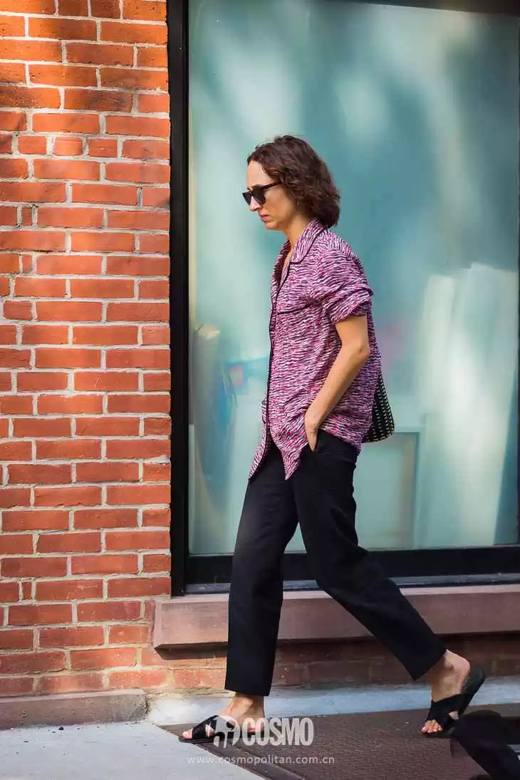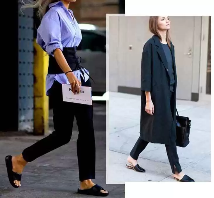 今年拖鞋超火,搭配黑裤子慵懒又时髦,适合追求舒适和时尚的女生。