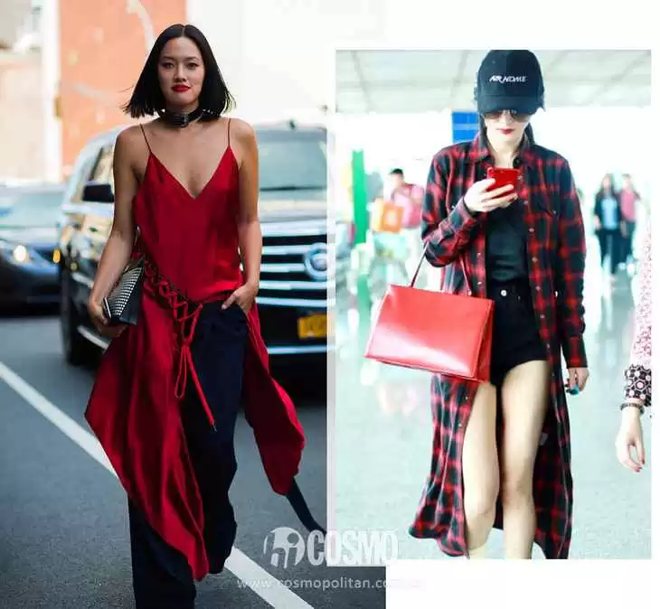 红黑搭配常常很惊艳,红色能打破黑色的沉闷,让整体更有活力,适合夏天。