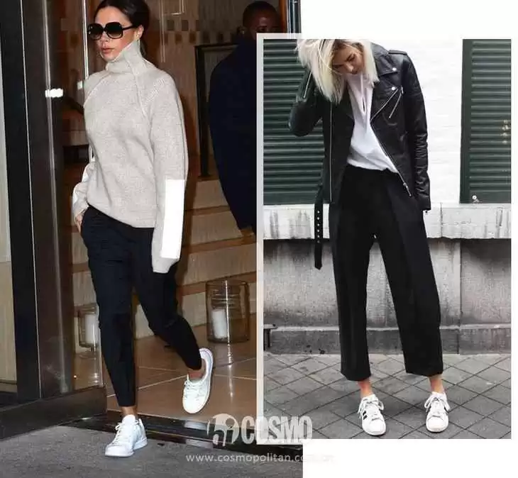 小黑裤配白球鞋最时髦,舒适又高街,从博主到明星都爱这么穿。