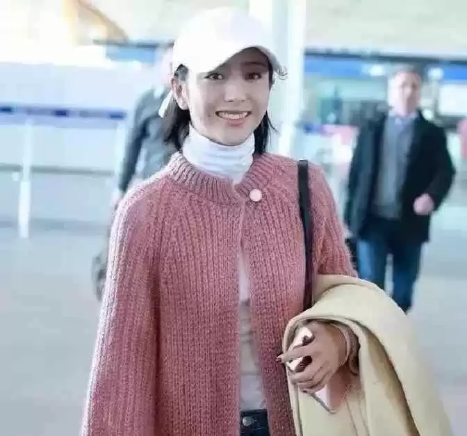 佟丽娅机场私服大秀搭配功力!针织大衣+牛仔裤,穿出年轻时尚感