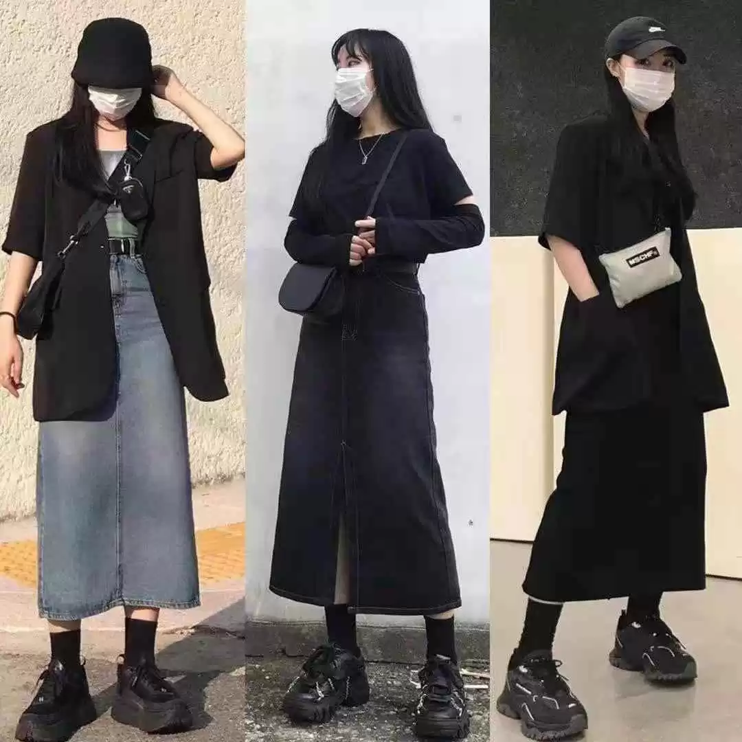 说完裤子,再聊聊裙子。下半肉肉的女生可以试试A字裙,遮肉效果超好。垂坠感强的裙子质感十足,长度到脚踝,配小白鞋或老爹鞋就很好看。