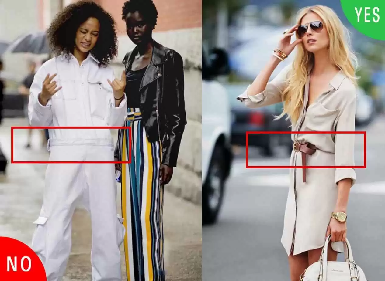 穿连体裤或连衣裙时,一定要用收腰设计强调腰线。加条腰带最方便,能自由调节松紧,让胸部到腰部的过渡更自然,身材比例也更协调。