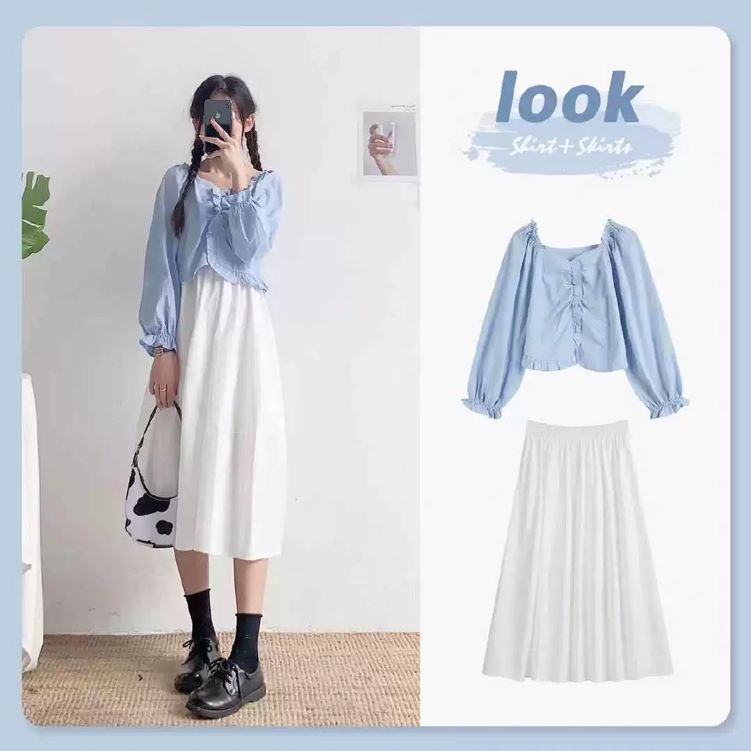 一件木耳边的短款衬衫,能穿出清纯少女感。这套搭配减龄又时髦,真心推荐给大家。清新的蓝色让人眼前一亮,展现又纯又欲的风格,值得一试。