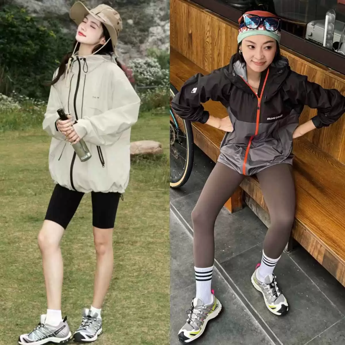 二、“冲锋衣+瑜伽裤+萨洛蒙”穿搭的3个小心机,别忽略!① 衣摆露一点,遮住尴尬区