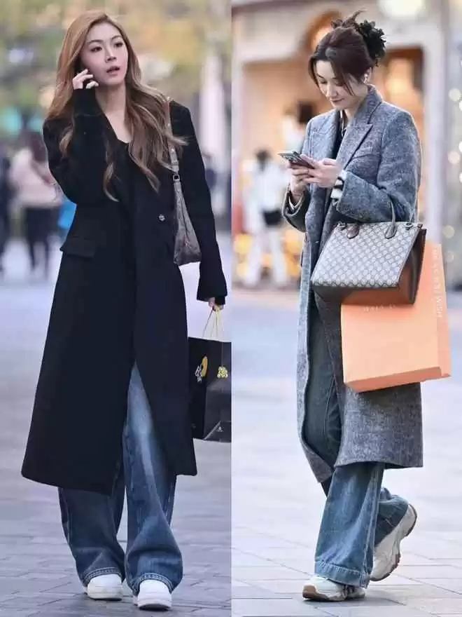 普通人冬天怎么穿?基础款黑色大衣配蓝色牛仔裤和小白鞋,简单又耐看。灰色大衣也ok,但记得选高腰款,长度过膝,裤子选直筒或阔腿版型,才能修饰身材。