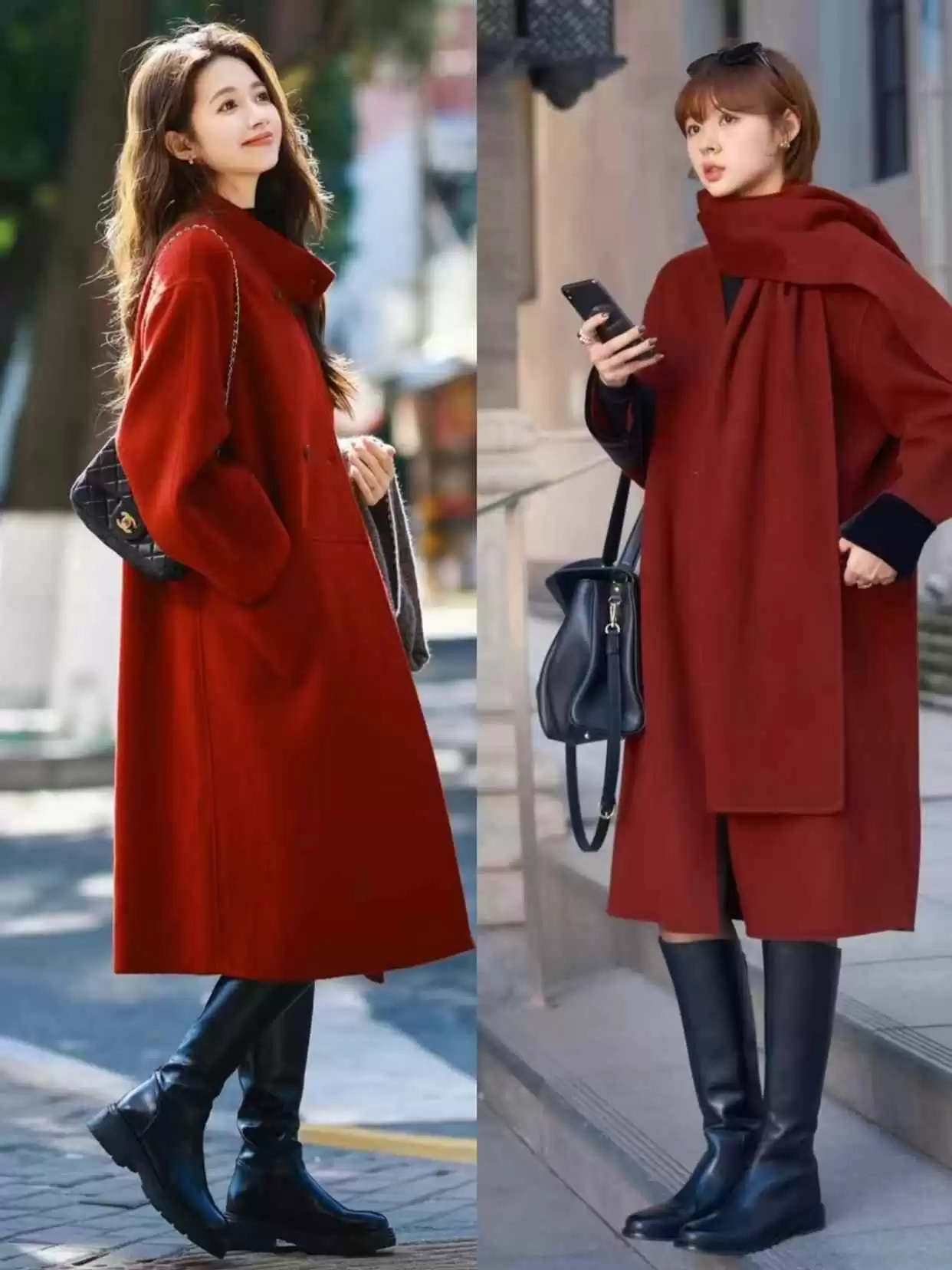 总结:不同场合穿搭要变通。年底过年穿红色大衣配黑色中筒靴和短裙,拎个链条包,加些配饰更精致。
