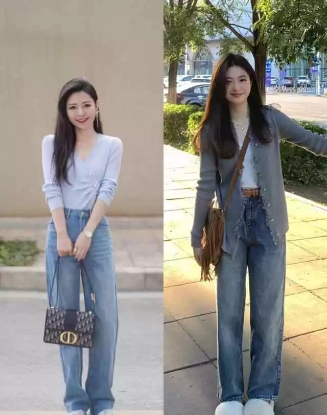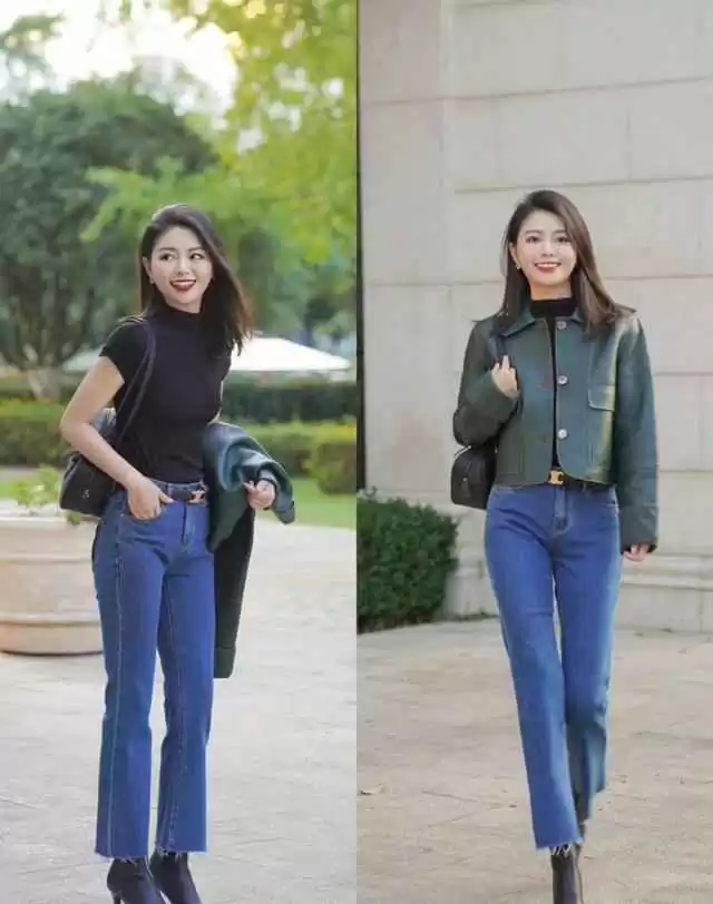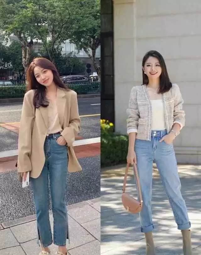 牛仔裤版型多,直筒、阔腿、微喇等都受欢迎。除了高跟鞋,可以配运动鞋、平底鞋或靴子,每种风格不同,休闲或正式都能驾驭。