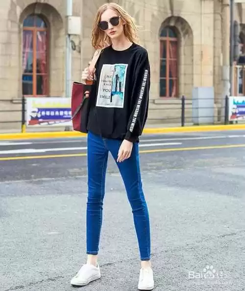 网友小王提问: 我腿比较粗,穿牛仔裤配什么上衣能显瘦?有没有图片可以参考?