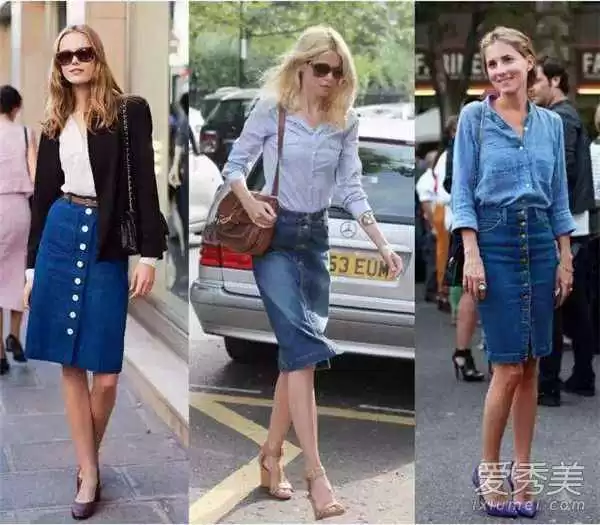 长度是第一个密码:俏皮的迷你牛仔裙,几乎是个鞋都能搭,从青春的帆布鞋到性感的凉鞋,它都hold住-7。而过膝的中长裙则更有女人味,它和踝靴是绝配,尤其是秋天,保暖又有型-3-9。要是裙长到小腿肚,试试搭配今年流行的细带低跟凉鞋,露出一截脚踝,显瘦效果一流。