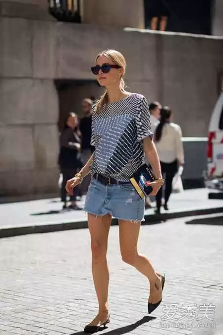 好了,解决了季节问题,咱再唠唠最实在的——咋穿能显身材。很多姐妹,特别是咱小个子或者有点肉感的姑娘,总担心牛仔裙压个子。秘诀就在上衣的选择上!如果你有一条高腰牛仔裙,那就千万别浪费它的优势。最不会出错的,就是搭配一件合身但不紧身的短款上衣,或者把上衣下摆利利索索地塞进裙腰里-7。这个法子能瞬间明确你的腰线,打造出“上短下长”的黄金比例,腿长秒增十公分不是梦-8。