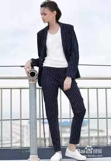 小白鞋+宽松西装外套:关键在于“上宽下紧”或“上下皆宽但露脚踝”。比如用oversize的西装外套搭配紧身内搭和直筒牛仔裤,再穿小白鞋,休闲感满分。或者像前面说的,用全套西装搭配小白鞋,记得把裤脚卷起一点,或者直接选择九分裤-4-9。